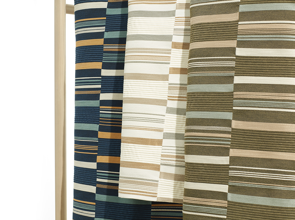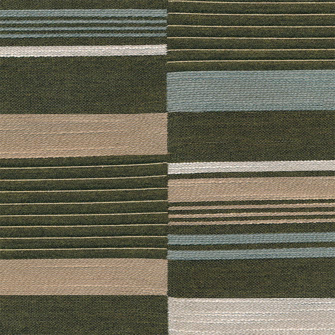 Gazing upon a beautiful landscape of fields from high up is a distinctive feeling. Vista brings us to that moment of bliss. A multi-color large rectangular pattern with accents of matelassé creates a dimensional quilted look. Made with 45% post-consumer recycled polyester and passing 200,000 double rubs, the inherently bleach-cleanable yarn gives the ground a unique mélange effect and a soothing abstract texture.