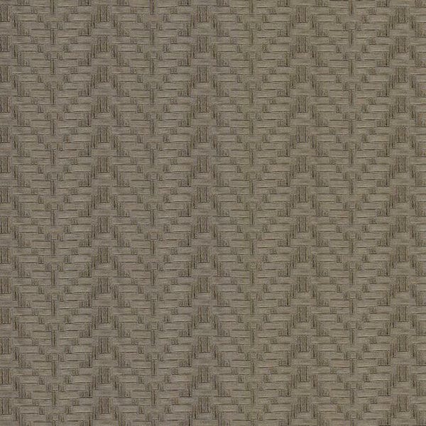 A woven chevron features an intricate emboss across the surface of this deeply textured high performance vinyl. A metallic accent adds a glamorous dimensional effect to its natural inspiration.